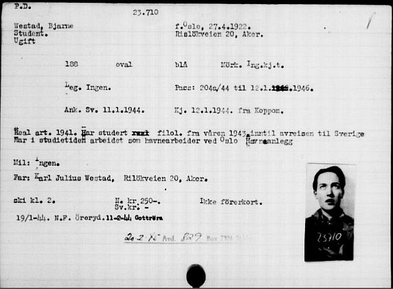 Personkort fra "Flyktninger til Sverige 1940-1945 nr. 10"